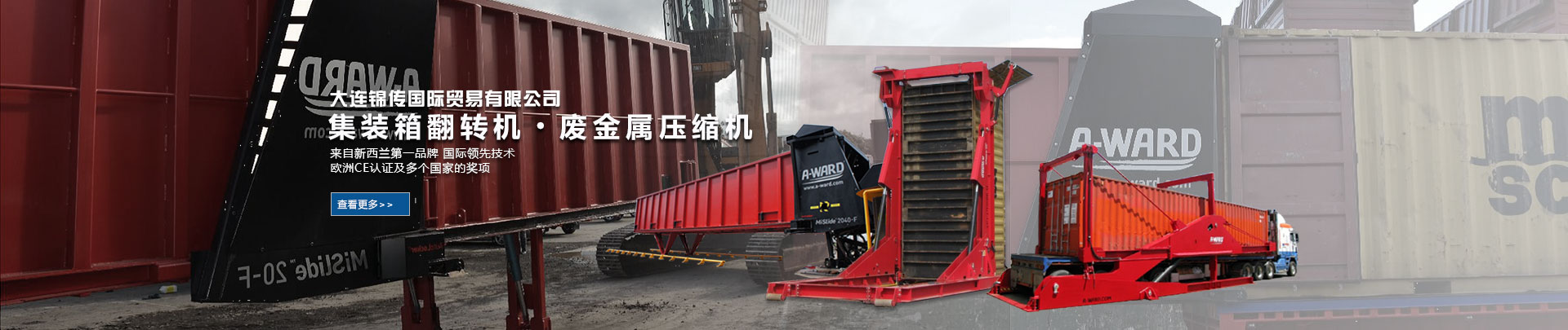 大連錦傳國際貿(mào)易有限公司于2013年11月與新西蘭A Ward公司達(dá)成戰(zhàn)略合作,成功代理集裝箱翻轉(zhuǎn)機(jī)、廢金屬壓縮機(jī)等產(chǎn)品在中國大陸的銷售、維護(hù)及保養(yǎng)業(yè)務(wù)。本公司重合同、守信用,保證產(chǎn)品質(zhì)量,以經(jīng)營多種特色的產(chǎn)品和薄利多銷的原則,贏得了廣大客戶的信任與厚愛。現(xiàn)長期出口產(chǎn)品至澳大利亞,巴西,德國,俄羅斯,哥倫比亞,美國,泰國,羅馬尼亞,新西蘭 ,意大利,越南,印度,印度尼西亞等國家。